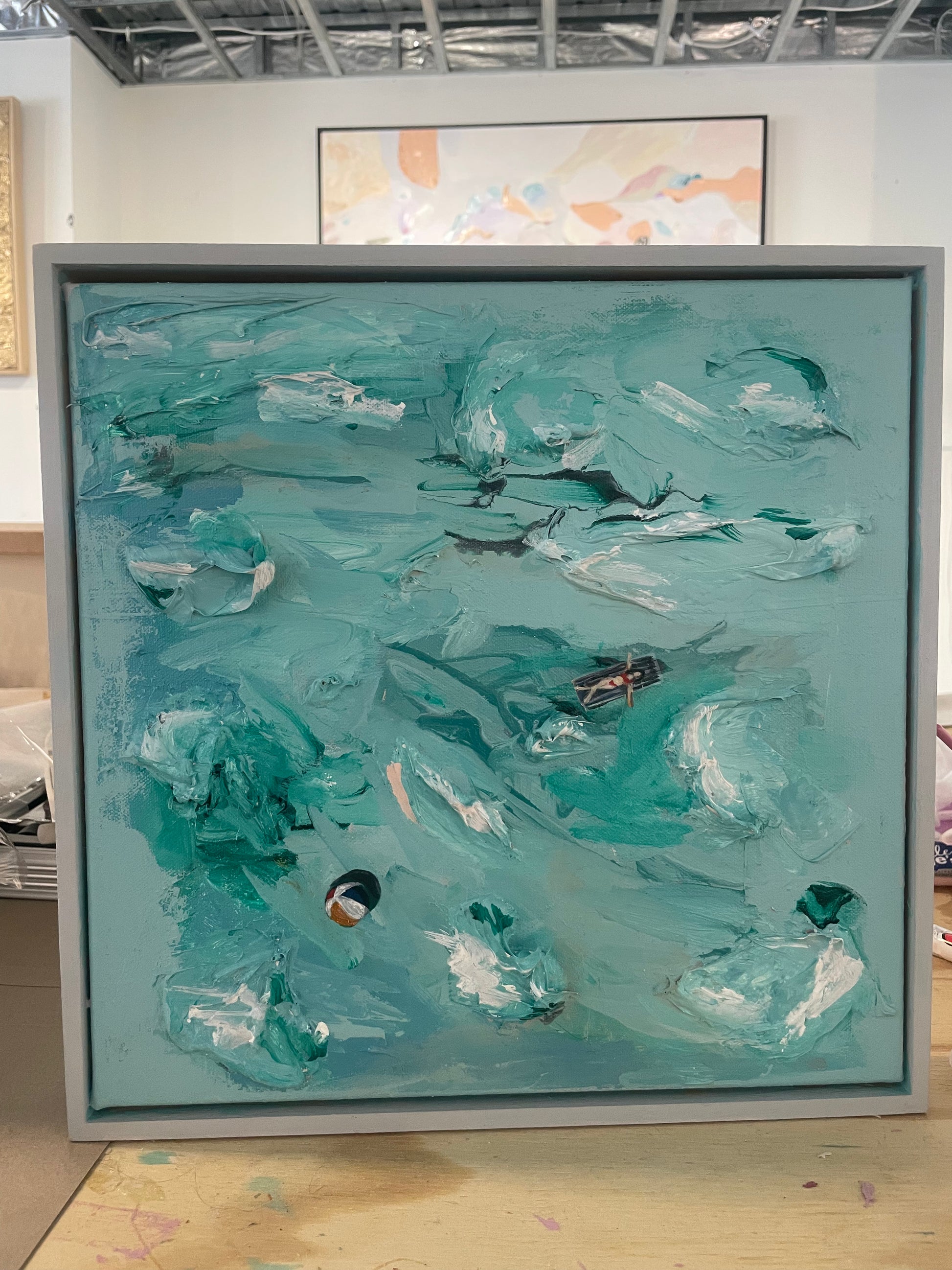 Soaking up the serenity on a lilo with a beach ball floating past.